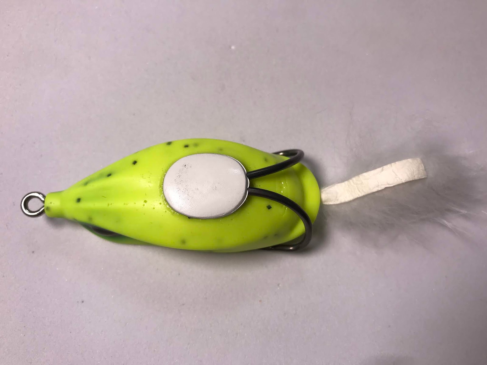 重量は11gあります。フロッグは中空なので意外と軽い。ヘビーなタックルで投げることが多いフロッグですが、この重さだと投げるのはちょっと難しいかも。ただ前に書いたラビットゾンカーを使った毛によって、遠投性能は上がっているようです。