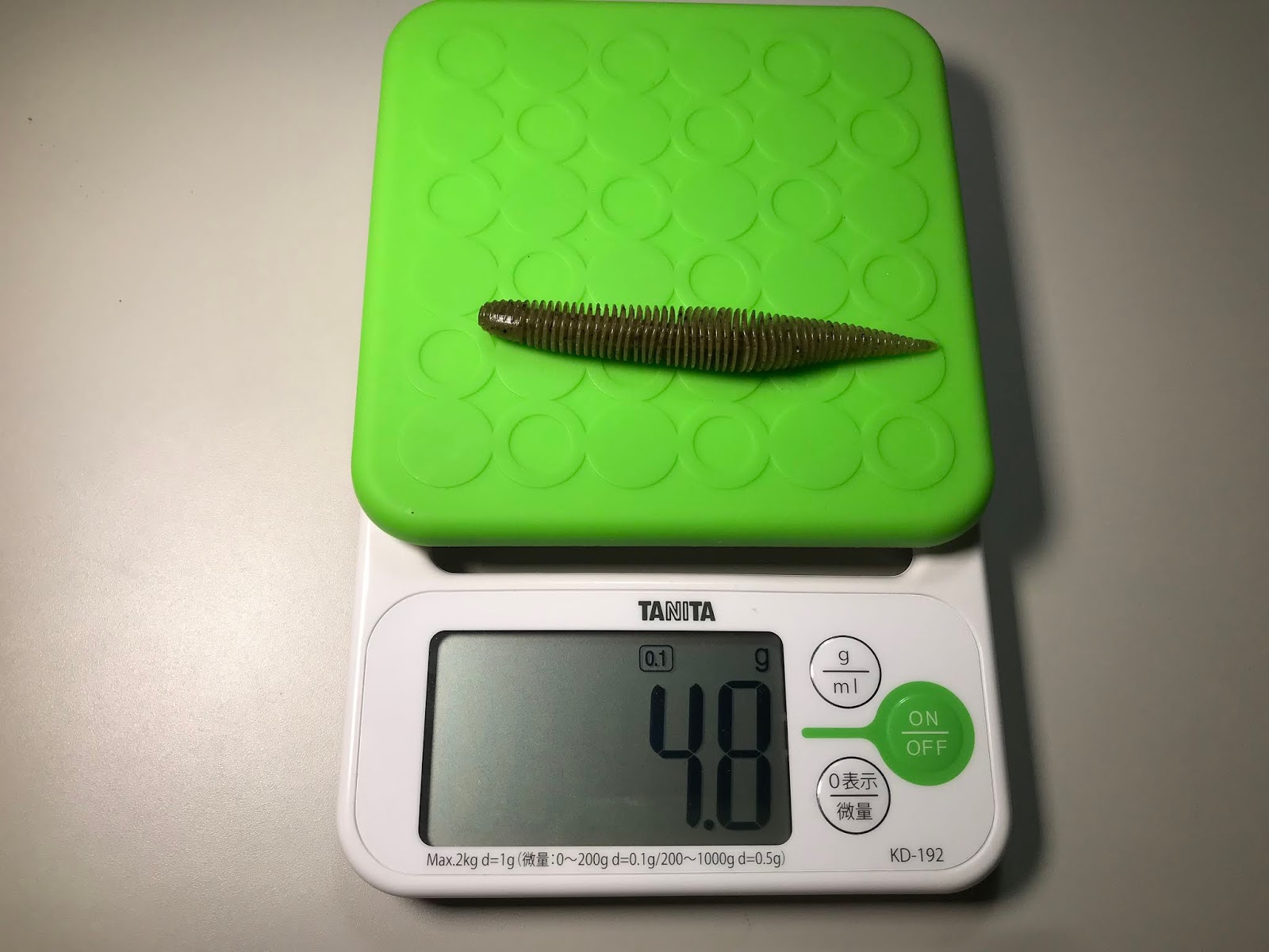 重さは4.8gあります。見た目よりは軽い感じがします。ボディがリブなのでその分軽くなっていると思われます。推奨のリグはライトテキサスリグで使うのが良いようです。使い方や釣っているシーンなどはこちらの動画で紹介されています。