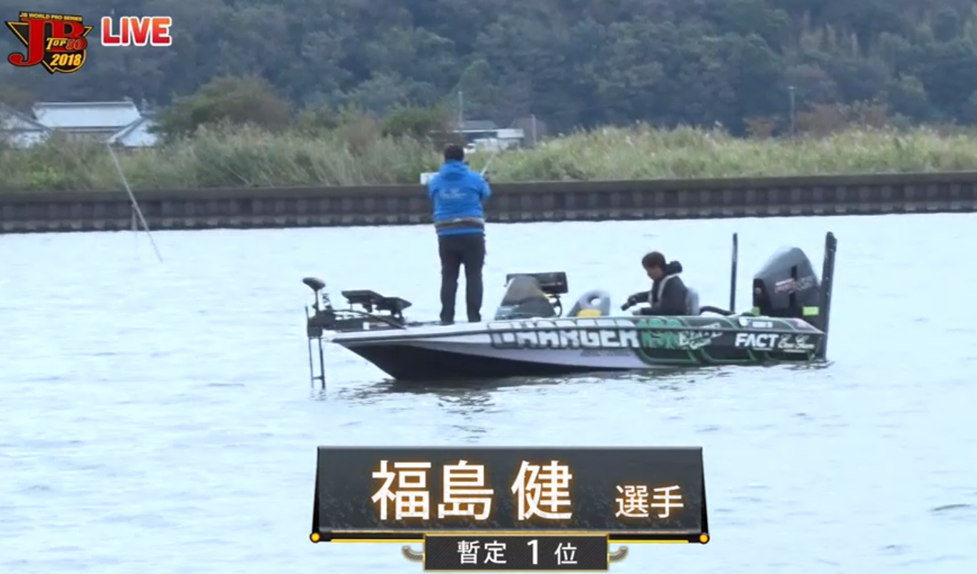 中継を見始めて、まず写ったのが予選トップの福島健プロが土浦周辺の浚渫で釣りをしているシーンだった。こんなとこで釣れんのか!といきなりおかっぱりには出来ないバスボートらしい釣りが展開された。ここは以前は釣れたらしいが、最近はあまり釣れる話は聞かない場所らしい。