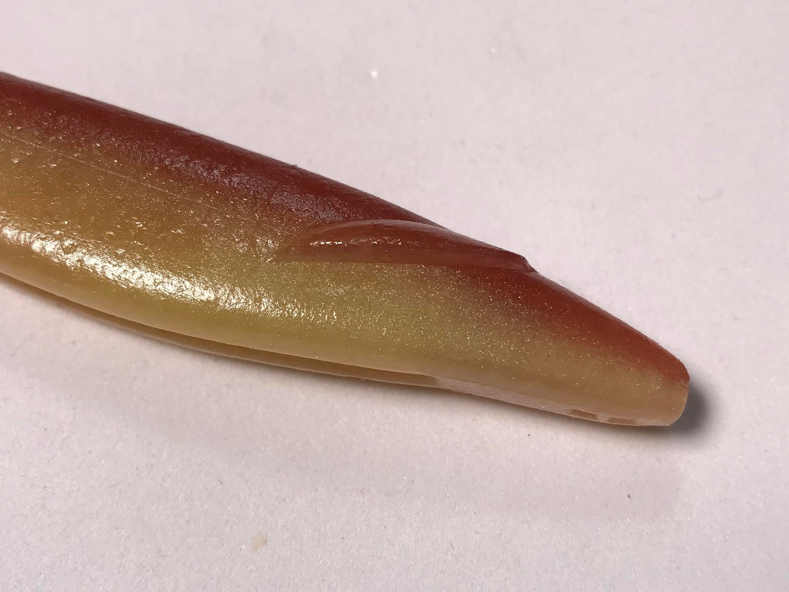 一見するとただのスティックベイトに見えますが、最大の特徴は、頭の両サイドについたキールです。巻いた時にここで水を受けて、下方へ水を押すので、上方へ跳ね上がるようなダートアクションを生み出す。