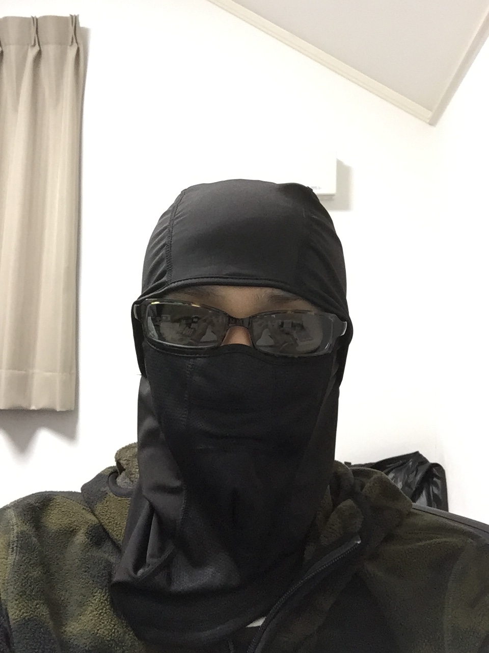 ただ、フードをかぶると暖かいのですが、動きづらく邪魔だったりします。そんな時にオススメなのが、フェイスマスクですね。フードと違って上着と分離するので、動きやすくなります。 また顔にしっかりフィットしているので、暖かいです。見た目はテロリストのようになりますが(;´Д`)。