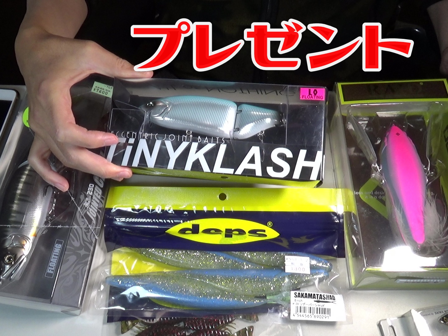 最近やけに人気の高いルアー「タイニークラッシュ」ですが、こちらをプレゼントの商品として用意してます。なぜ人気なのかわかりませんが、おそらくYouTubeでよく使われているのが原因と思われます。