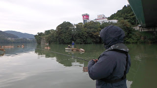 今回ほぼ初めてに近いということで、相模湖には頻繁に通っている釣り&ブログ仲間のたつのきんご君と一緒のボートに乗せてもらった。腕利きのガイドが居るのでこれは爆釣間違いなしか?